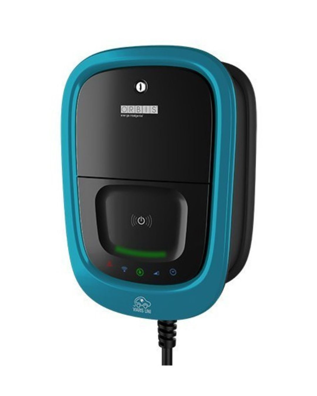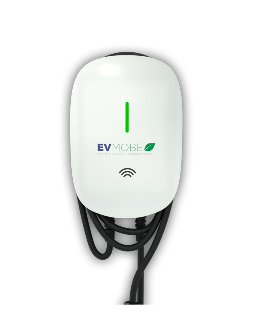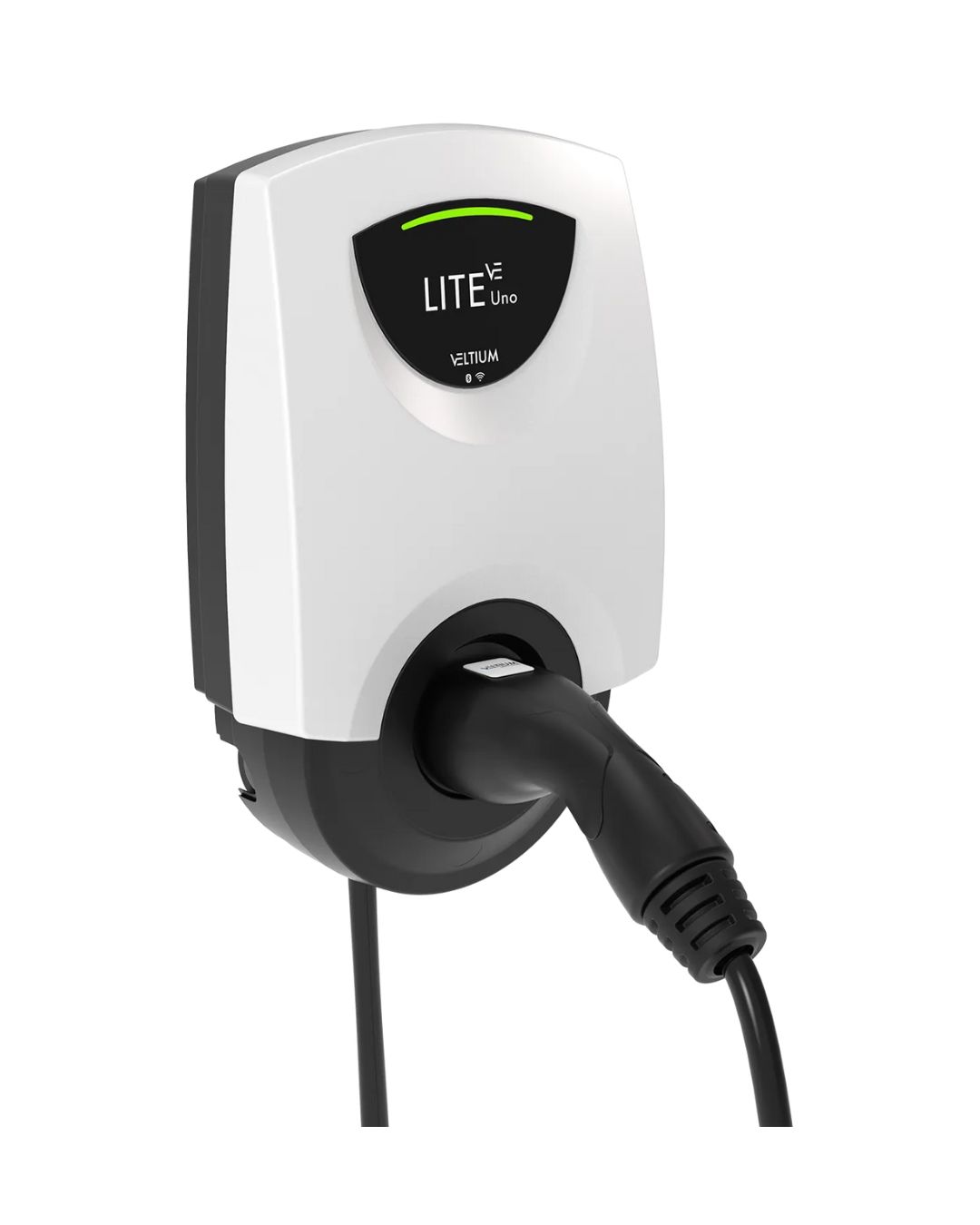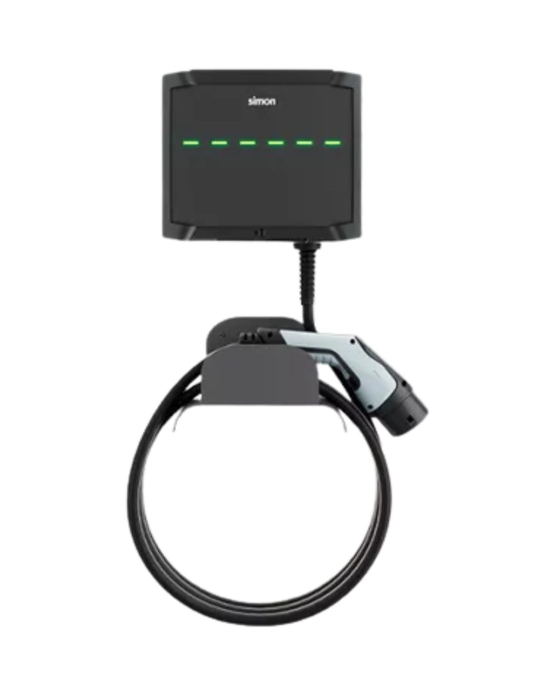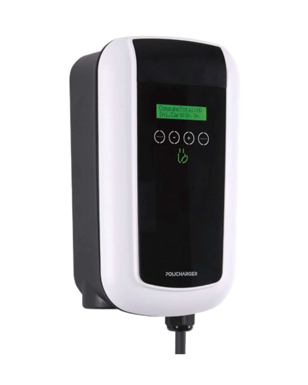 Cargador monofásico con cable fijo de 5 metros y 7,4 kW de potencia.